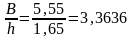 б) глубины В к высоте h от уровня условной рабочей поверхности