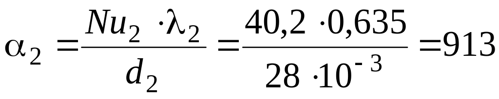 2. Розраховуємо коефіцієнт тепловіддачі від води, що гріє, до внутрішньої поверхні труби.