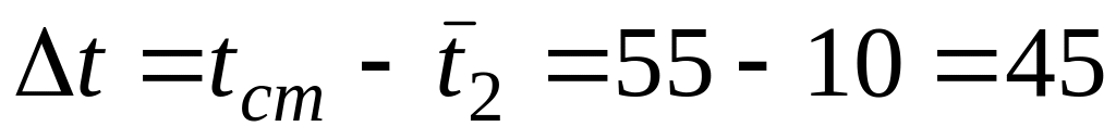 середній між температурами теплоносіїв: