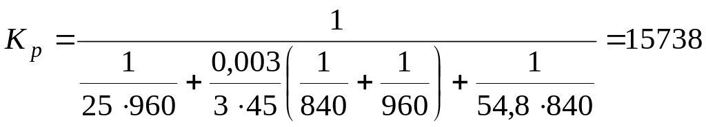 7. Визначаємо коефіцієнт теплопередачі. Якщо термічний опір теплопровідності насадки малий, коефіцієнт теплопередачі визначається з формули [3]: