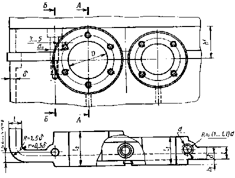 7.5. Конструктивное оформление приливов для подшипниковых гнезд.