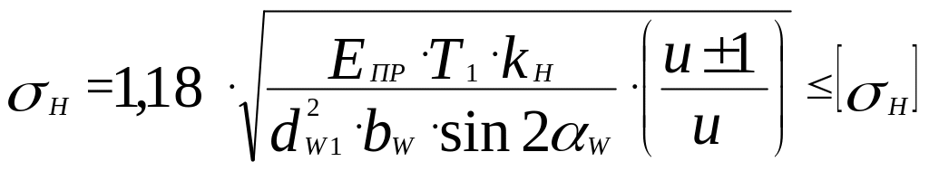 [H] – допускаемое контактное напряжение,