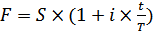 де: F – сума кредиту з відсотками;