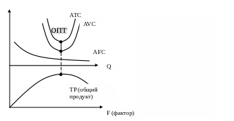 Средние переменные издержки AVC падают, достигая min значения, потом возрастают, так как при расширении производства наступает момент, когда, но становится менее эффективным, то есть снижается производительность, в этот момент вступает в силу закон убывающей производительности: