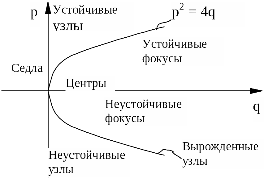 - •Лекция 3. Типы особых точек и фазовые портреты линейных систем второго порядка.