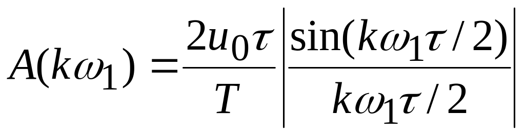 Характер изменения амплитуд диктуется функцией sinx/x и не зависит от частоты следования импульсов. На частотах, кратных 2π/τ огибающая равна 0.