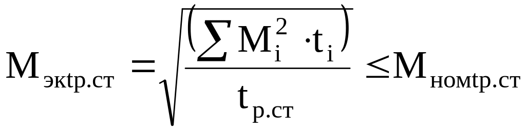 К этому же режиму относят и циклическую нагрузку. В случае длительности цикла более 10 минут условия выбора определяются по ( ). При циклической нагрузке и длительности цикла, не превосходящей постоянную нагрева, условия выбора определяются по эквивалентным значениям Мэк и Рэк. Выбранный двигатель должен быть проверен по условиям пуска и перегрузочной способности. Ммax > Мн; Мmах > Мн.