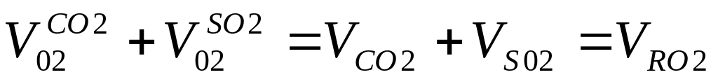 Стехиометриялық теңдеулерге сәйкес оттынның толық жануы кезінде көміртегі жануына оттегі шығыны пайда болатын көміртегікөлеміне тең, ал күкірт жануына оттегі шығыны пайда болған күкіртті газ көлеміне тең.