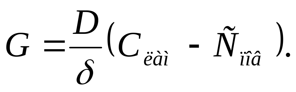 Молекулалық дифузиямен ламинарлық қабат арқылы оттегінің сонша саны да беріледі:
