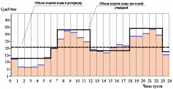 График водопотребления населенного пункта и подачи воды насосной станцией