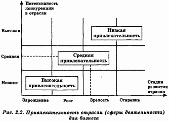 Кроме конкуренции, на привлекательность отрасли существенное влияние оказывает фаза ее жизненного цикла (рис. 2.2). Как и предприятия, отрасли зарождаются, развиваются и умирают, т.е. имеют жизненный цикл, определяющий спрос на их продукцию.
