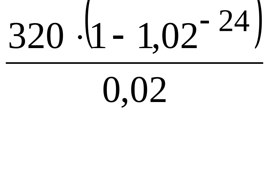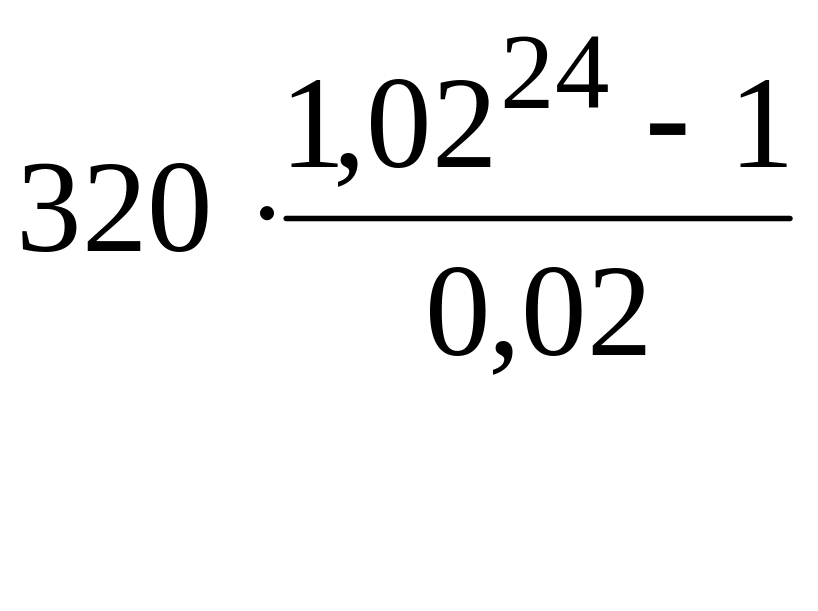 ПРИМЕР 7. Найти текущее значение и наращенное значение ренты с выплатами по 320 гривен в конце каждого года в течение 24 лет. Проценты начисляются по ставке р = 2%.