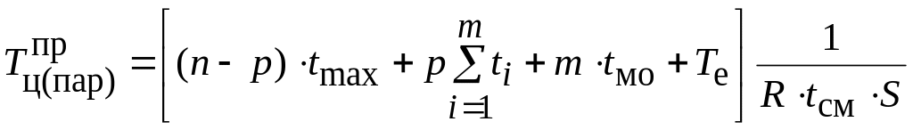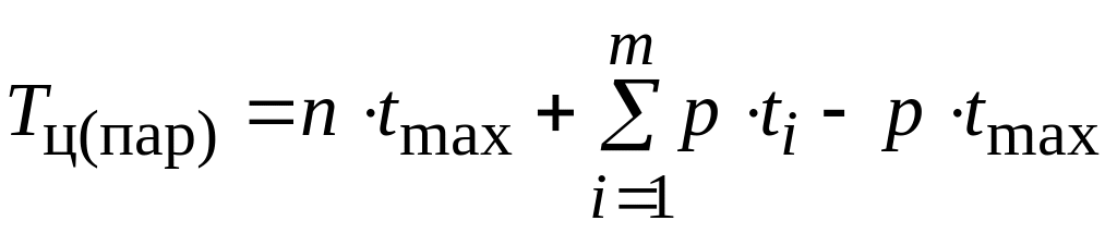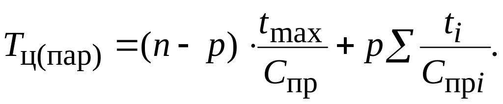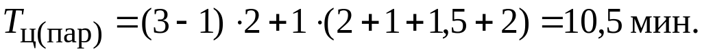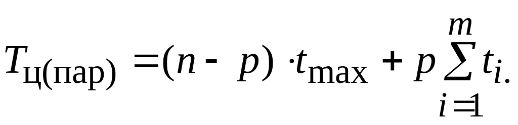Продолжительность производственного цикла при параллельном виде движения деталей по операциям технологического процесса определяется по формуле