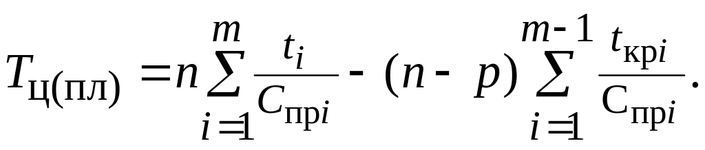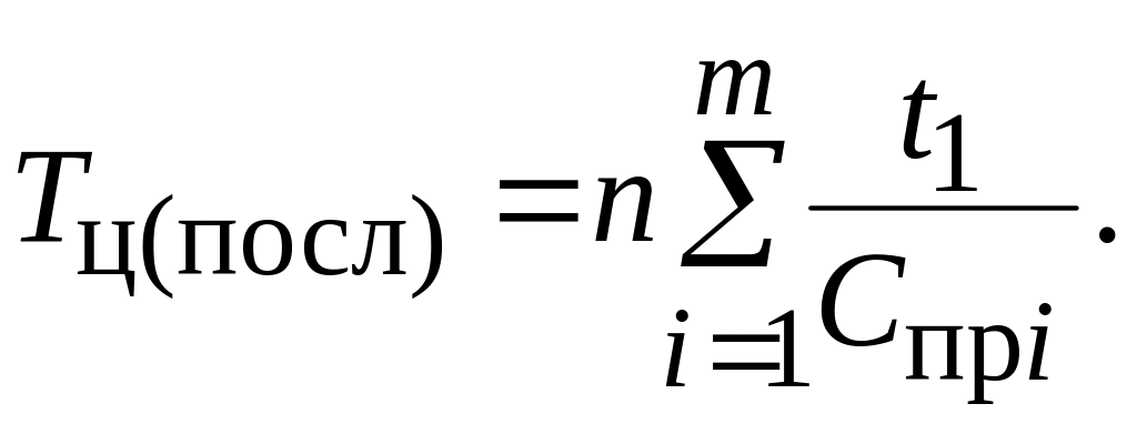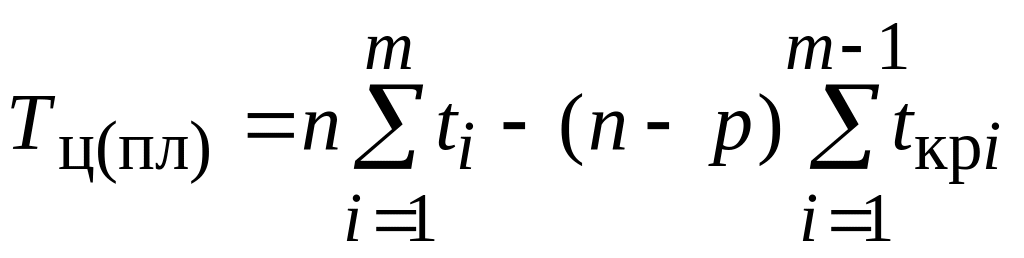 Продолжительность производственного цикла при последовательно-параллельном движении деталей по операциям рассчитывается по формуле