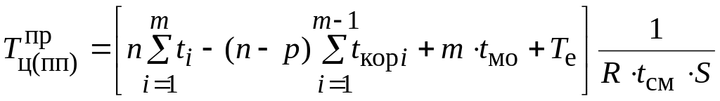 Общее время пролеживания всех деталей в партии (для определения величины незавершенного производства) рассчитывается по формуле