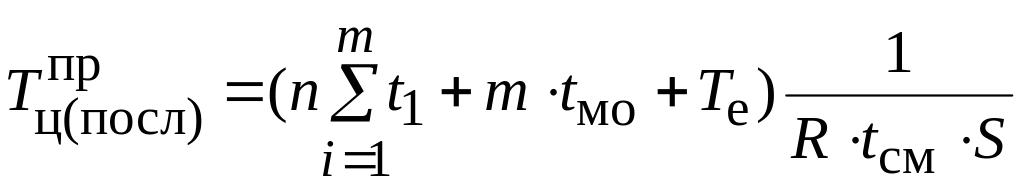 Время пролеживания одной детали на всех операциях технологического процесса определяется по формуле
