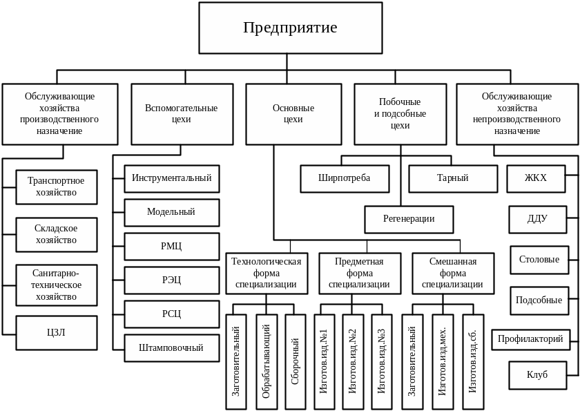 специализированных цехов, участков предприятия, их размещение и производственные связи между ними, что является важнейшим фактором формирования производственной структуры.