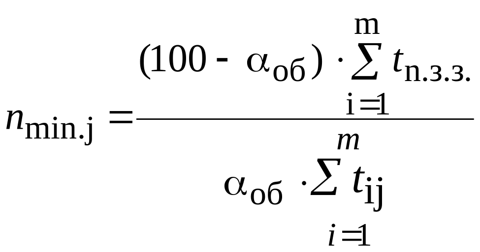 За максимальный размер партии деталей j-го наименования может быть принята месячная программа выпуска. В рассматриваемом примере