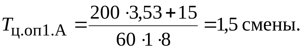 При исходных данных рассматриваемого примера продолжительность операционного цикла обработки детали "А" на первой операции составит