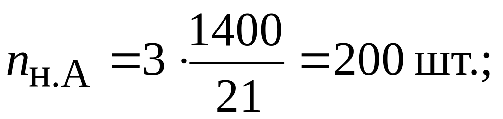 Число партий по каждому j-му наименованию деталей (А) определяется по формуле