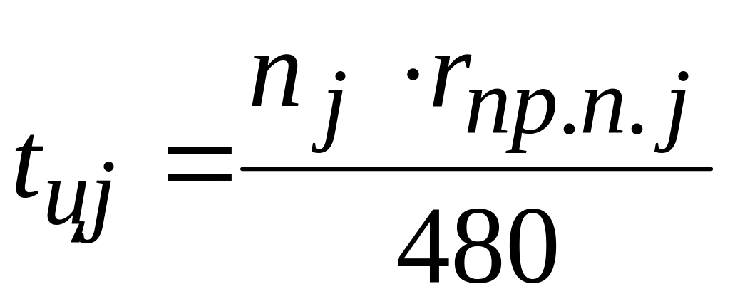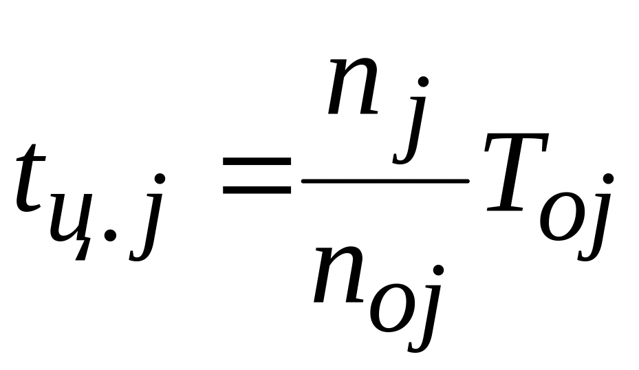 Продолжительность производственного цикла (занятость МППЛ обработкой партий предметов труда -го наименования) определяется по одной из формул