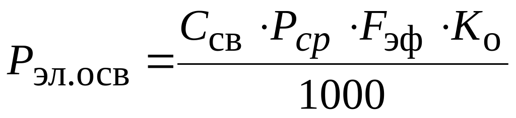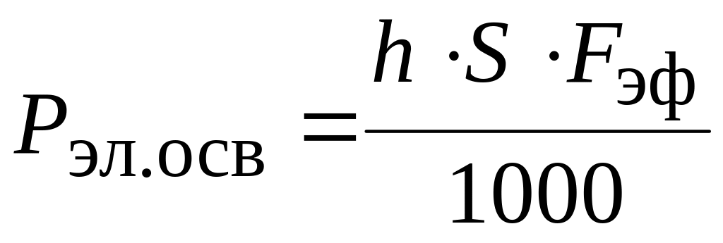 Потребное количество электроэнергии, идущей на освещение помещений, определяется по формуле