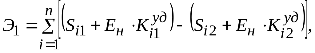 Первая составляющая эффекта (Э1) выражается в сокращении затрат в результате проведения организационных и технических мероприятий, направленных на сокращение трудоемкости стадий и этапов ТП. Достигается это, как уже выше было сказано, путем использования унификации и стандартизации конструкций, типизации технологических процессов и стандартизации технологического оснащения либо с помощью механизации и автоматизации инженерного труда, например использования САПР и др.