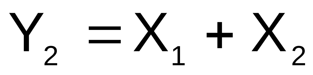Рисунок 2.3 - а) – структурна схема електронного пристрою, яка реалізує функцію ; б) – схема, яка реалізує функцію Y2 = X1+X2; в) – таблиця, яка задає закон функціонування обох схем
