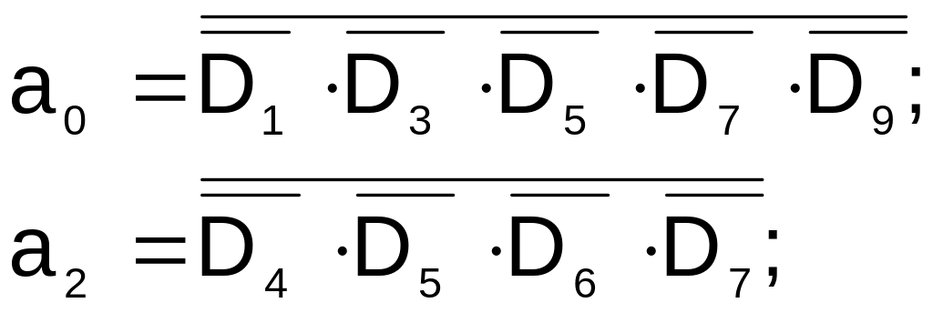 Схемно реалізувати шифратор зручно на елементах І-НЕ, тому зробимо еквівалентне перетворення одержаних співвідношень: