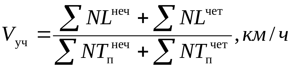 Учитывая, что большинство ниток поездов проложено на графике без остановки, с одинаковым временем в пути по направлениям, можно количество таких поездов умножить на время в пути одного поезда, добавить время в пути поездов, имеющих остановки, и таким образом рассчитать средневзвешанные величины участковой и технической скоростей: