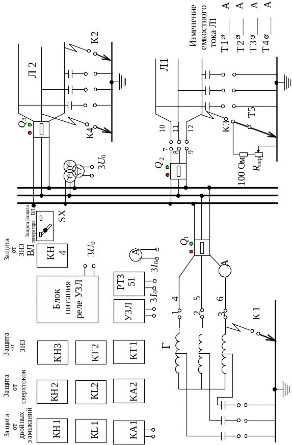 КА 2, КТ 1, КН 2 – защита от сверхтоков, КА 1, КН 1 – защита от двойных замыканий, РТЗ 3, КТ 2, КН 3 – защита от замыканий на землю