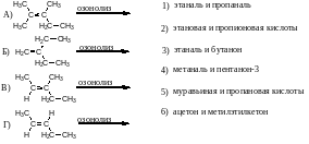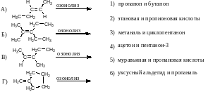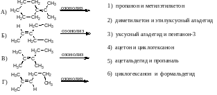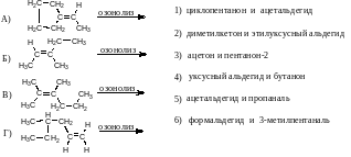 В2. Установите соответствие между формулами алкенов и продуктами их озонолиза.