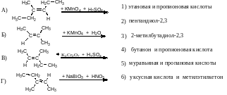 В1. Установите соответствие между формулами алкенов и продуктами их окисления.