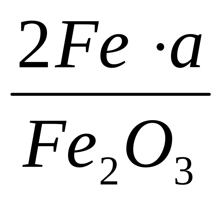 Після осадження і усіх наступних операцій постійна маса осаду дорівнює 0,1263 г. Хімічна формула сполуки, у вигляді якої отримано осад після прожарювання, або вагова форма – Fe2O3. Складаємо пропорцію: