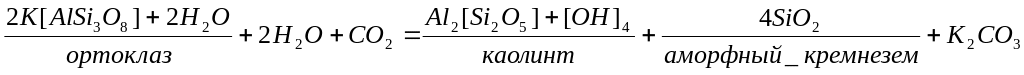 ные ионы водорода и растворенную СО2. Процесс каолинизации полевых шпатов схематически представляется в следующем виде: