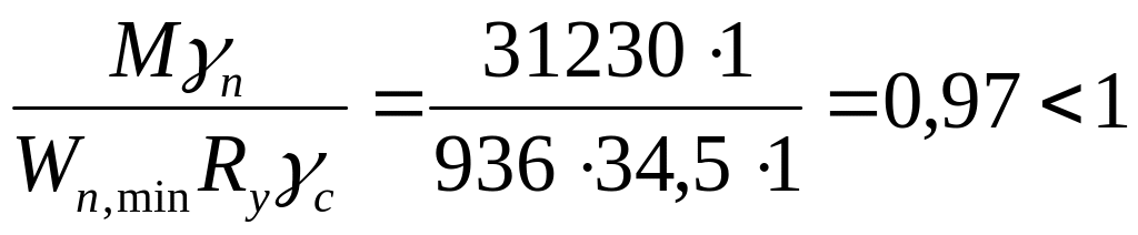 3. За формулою (9.1) визначаємо згинальний момент за граничним розрахунковим значенням навантаження у пружній стадії роботи сталі: