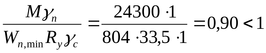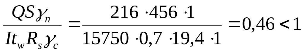 Не зважаючи на зменшення розрахункового опору, умова міцності за нормальними напруженнями задовольняється.