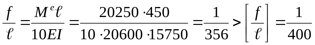 8. За наведеною у пункті 4 формулою виконуємо перевірку прогину:
