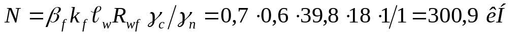 9. Із формули (16.2) [1] визначаємо розрахункову несучу здатність з’єднання з кутовими швами при розрахунку по розрахунковому зрізу в площині наплавленого металу: