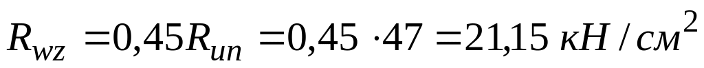 5. Відповідно до табл. 7.3 [1] (табл. А.7) розрахунковий опір кутового шва у площині металу межі сплавлення з основним металом визначається через тимчасовий опір сталі з’єднуваних елементів: