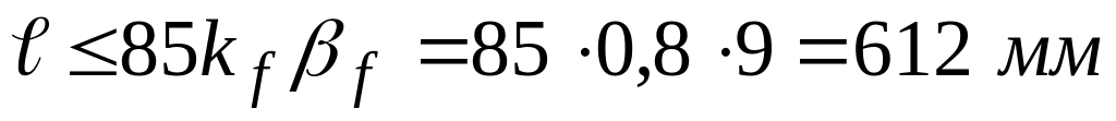 8. Обчислюємо розрахункову довжину зварного шва по конструкції з’єднання з урахуванням указівок пункту 16.1.16 [1] (приймаємо менше значення):