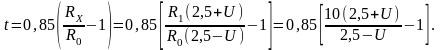 4) (5.9) өрнегі бойынша есептеулер жүргізіңіз, және кестеге вольтметр қателігін ескере отырып Rx мәндері өзгерген кездегі температураның мәндерін жазып алыңыз. Терморезистор мыс t= 0 oC кезінде Ro = 10 Ом. Электрлік термометрдің көрсетуі бойынша келесі теңдеумен сипатталады.