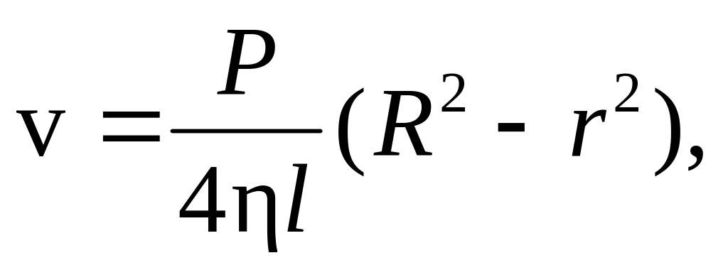 де Р = РА – РВ, r – відстань елемента рідини від вісі трубки.