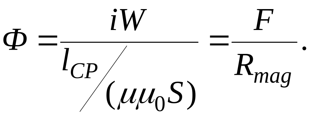 Если проводить аналогии по форме дроби с законом Ома, между магнитным потоком и электрическим током, между намагничивающей силой и ЭДС, то получается, что неизвестная величина это некое магнитное сопротивление