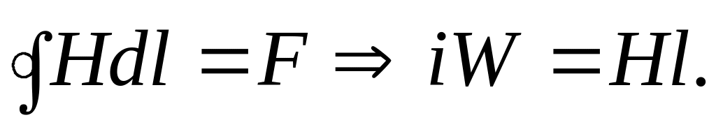 Напряженность магнитного поля в магнитопроводе определяется с помощью закона полного тока, поэтому для намагничивающей катушки можно записать