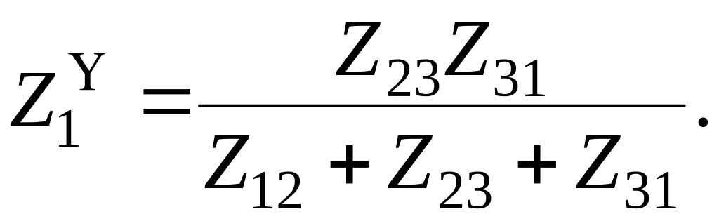 Правило преобразования «треугольника» в «звезду»: комплексное сопротивление луча «звезды» равно произведению двух комплексных сопротивлений «треугольника», присоединенных в нем к одноименному (подобному) узлу, деленному на сумму всех сопротивлений «треугольника».
