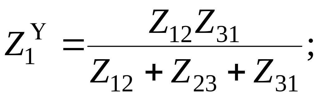Если заданы комплексные сопротивления «треугольника» и отыскиваются сопротивления эквивалентной ему «звезды», то следует пользоваться формулами: