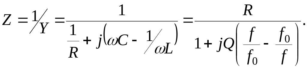 Комплексное сопротивление параллельного контура, если его выразить через добротность, равно