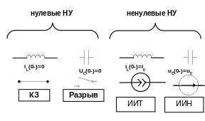 НУ определяют начальный запас энергии в электрическом и магнитном полях элементов цепи. Они могут быть нулевыми и ненулевыми.