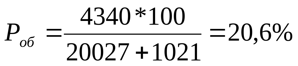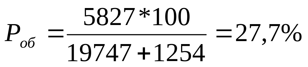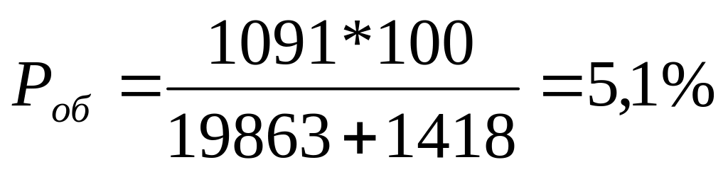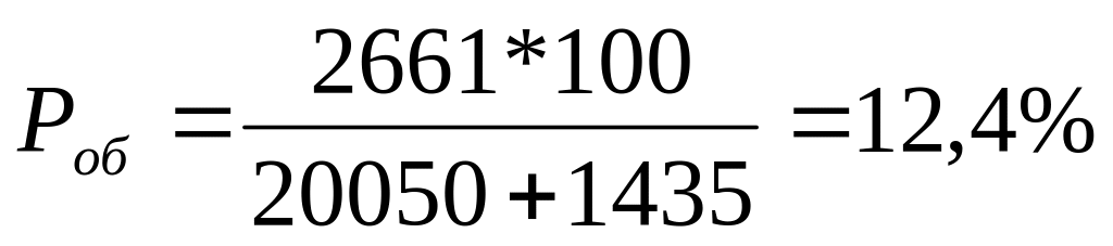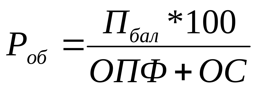 где Роб - уровень общей рентабельности предприятия, %; Пбал - прибыль балансовая предприятия, тыс. руб.; ОПФср - среднегодовая стоимость основных производственных фондов, тыс. руб.; ОФН - среднегодовые остатки нормируемых оборотных средств, тыс. руб.